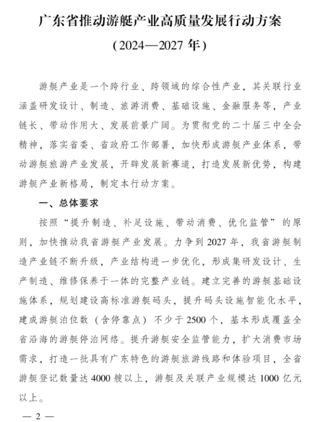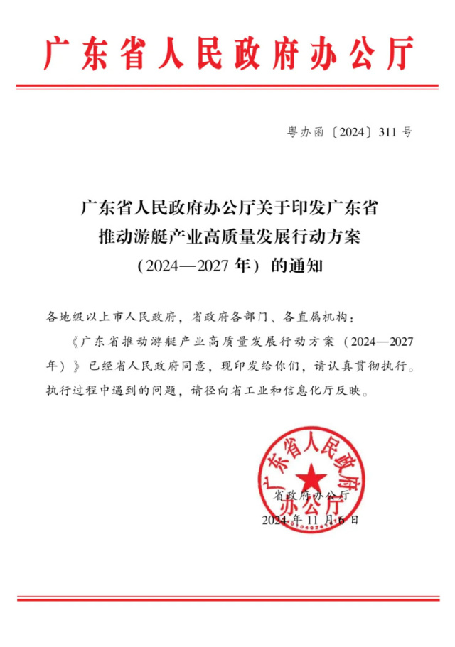 廣東省人民政府辦公廳關于印發廣東省推動游艇產業高質量發展行動方案(2024—2027年)的通知