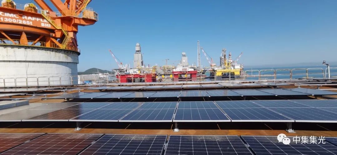 中集集光的全國初個半潛式海上浮式光伏3月底已經安裝到位,并與國家光伏質檢中心(CPVT)共建了全國初個海上光伏實證基地,首批二十多家主流光伏組件生產商送來的產品已經安裝到位,并已經接入海上基地平臺上的分布式儲能消納系統,開始為平臺生活區供電。